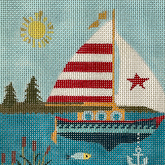 Sailboat with Red and White Striped Sail C-PPSNOL01B