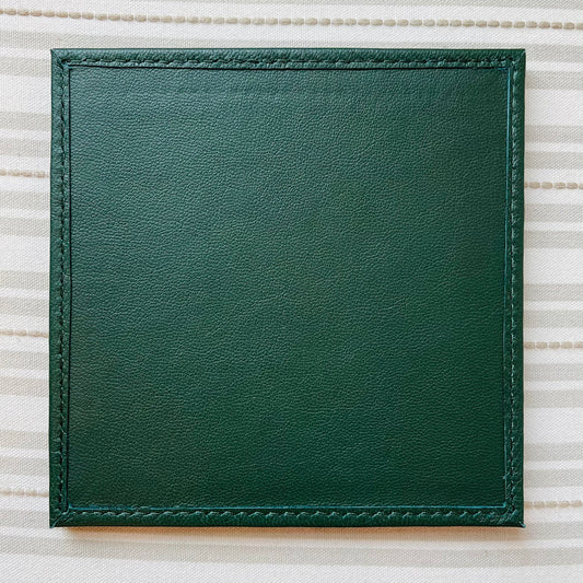 Leather Self Finishing Square Coaster - Green A-PESFCgreen